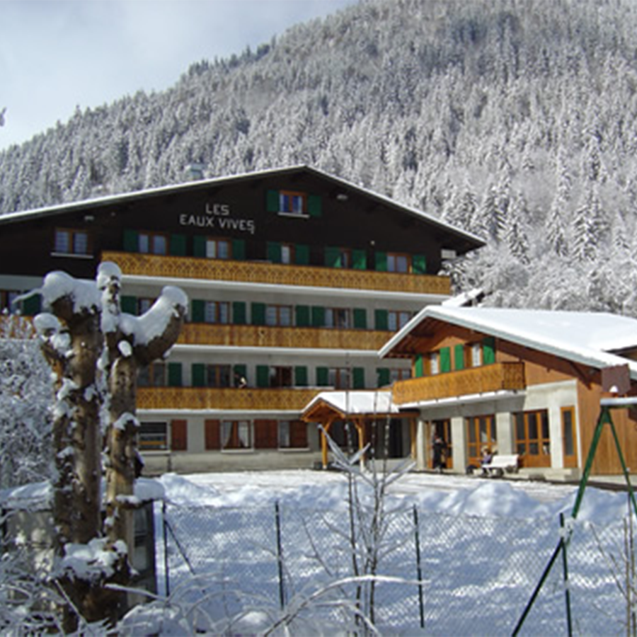 Situé à Essert Romand, charmant village haut savoyard à seulement trois kilomètres de Morzine, le centre de vacances les Eaux Vives incarne un état d’esprit convivial et chaleureux, offrant trois salles de restaurant, des chambres de 2 à 10 lits avec salle de bain et WC, ainsi que trois salles d’activités comprenant baby-foot, ping-pong et télévision. En été, profitez de notre piscine chauffée et de notre terrain d’activités de 800 m² avec panier de basket. En résumé, les Eaux Vives sont l’endroit idéal pour des séjours de classes de neige, de découvertes ou des colonies de vacances.